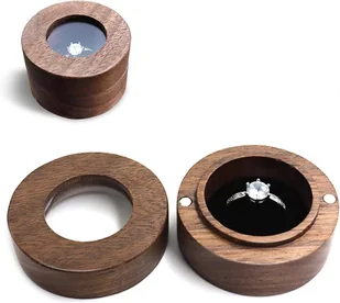 Pudełko na pierścionki z drewna orzechowego, miękkie, aksamitne wnętrze, drewniane pudełko na kolczyki i biżuterię na ceremonię zaręczynową lub ślub..