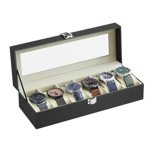 Pudełko na zegarek z 6 przegródkami, koperta zegarka ze szklaną pokrywką, pudełko ekspozycyjne na zegarek z wyjmowanymi poduszkami na zegarek, metal..