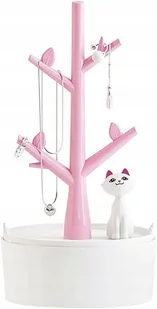Śliczny Stojak na Biżuterię Organizer na Różności Różowy z Kotkiem