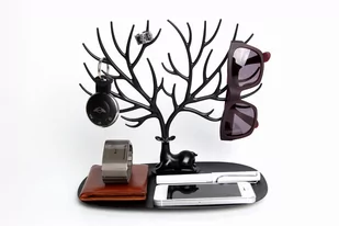 designerski wieszak / organizer / stojak na biżuterię wymiary: 25x15x22cmcm eleganckie, eko opakowanie w uniwersalnym czarnym kolorze materiał: tworzywo sztuczne w 100% przetwarzalne marka: Qualy dobry pomysł na prezent dla koleżanki, mamy, siostry, żony fajny upominek dla każdej Pani, która lubi stylowy design nie tylko w swojej biżuterii ale także we wnętrzu mieszkania
