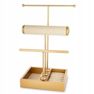 Zorganizuj swoją biżuterię z klasą – wybierz stojak w kolorze jasnego złota z marmurową podstawą, który łączy piękno i funkcjonalność. Niech każda ozdoba ma swoje miejsce!