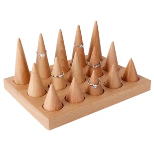 Cechy: 1. Wykonany z wysokiej jakości materiału bukowego, wytrzymały i trwały do długotrwałego użytkowania. 2. Stożkowy uchwyt na pierścionki może obsługiwać różne rozmiary pierścionków. 3. Prosty i delikatny model, może być do przechowywania i eksponowania pierścionków. 4. Sprawi, że garderoba i stół do makijażu będą wyglądać pięknie i dobrze utrzymane. 5. Specyfikacja: