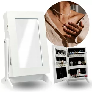 Szafka na biżuterię z lustrem w wymiarach 21x15x35 cm to nie tylko praktyczne rozwiązanie, ale również elegancki dodatek do każdej sypialni. Idealna jako pre...
