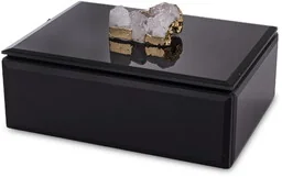 Szkatułka kasetka na biżuterię szklana glamour 8x16x12 169325 Rozmiar: 8x16x12 cm Kolor: czarny, biały, złoty Materiał: mdf, szkło, agat