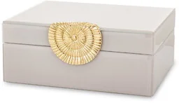 Szkatułka kasetka na biżuterię szklana glamour 8x19x15,5 179056 Rozmiar: 8x19x15,5 Kolor: ecru, złoty Materiał: mdf, szkło, metal