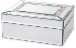 Szkatułka kasetka na biżuterię szklana glamour srebrna 8x19x15cm 169300 Rozmiar: 8x19x15cm Kolor: srebrny, kremowy Materiał: mdf, szkło