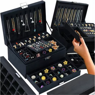 Kuferek jest idealny do przechowywania biżuterii, takiej jak pierścionki, kolczyki, bransoletki i naszyjniki. Dzięki różnym przegródkom i haczykom, każdy rodzaj biżuterii może być przechowywany osobno, co ułatwia organizację.