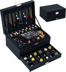 Ergonomiczny design pozwala ukryć w kuferku bardzo dużą ilość biżuterii, dzięki różnym przegródką i haczykom uporządkujesz każdy rodzaj biżuterii.