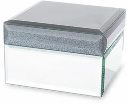 Szkatułka na biżuterię szklana pudełko glamour 8x12,5x12,5 144816 Rozmiar: 8x12,5x12,5 Kolor: szary, srebrny Materiał: szkło, mdf