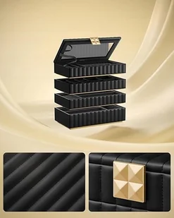 Szkatułka na biżuterię z lustrem, 4-poziomowa, do przechowywania biżuterii tacki na biżuterię, 17 x 28 x 20,5 cm