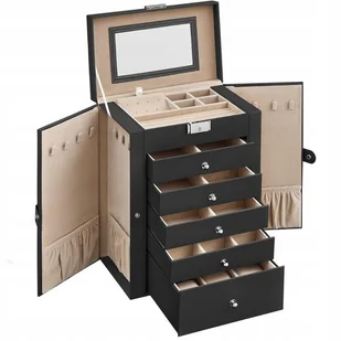 Doskonale będzie się prezentować zarówno na komodzie w sypialni, jak i w garderobie, umożliwiając przechowywanie kolczyków, łańcuszków, pierścionków, bransoletek, broszek, naszyjników, okularów i innych akcesoriów.