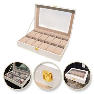Przepiękna i niezwykle funkcjonalna szkatułkaSzkatułka idealnie nadaje się na prezent.Jest niezwykle praktyczna i doskonale chroni zegarki, biżuterię bądź bransoletki przed kurzem i zarysowaniami. Najważniejsze informacje:- wysokiej jakości wykonanie;- niewielkie rozmiary, ale bardzo funkcjonalny - pozwala wygodnie przechować 10 zegarków;- posiada solidny metalowy zamek;- zapewni najwyższą ochronę dla Twoich zegarków;- wykonana z eleganckiego materiału;-- przezroczyste okienko, pozwalające przeglądać zawartość szkatułki. Wymiary:- 30 x 20 x 8 cm- szerokość pojedynczej przegrody: 4,4 cm- długość pojedynczej przegrody: 9 cm- wysokość pojedynczej przegrody: 4 cm Wymiary opakowania:31 x 22 x 9 cmWaga:1,15 kg