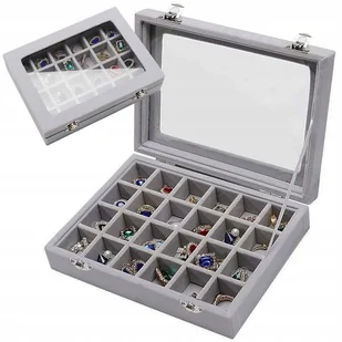 Tacka zamykana szara z 24 przegrodami na pierścionki, kolczyki, bransoletki.