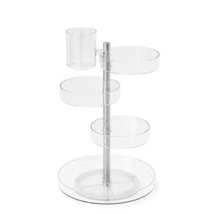 Szafki, stojaki lub pudełka pozwolą w doskonałym stylu zadbać o biżuterię, zapewniając jej ochronę przed uszkodzeniem, a także pięknie ją wyeksponuje. Wykorzystaj specjalnie zaprojektowany do tego celu produkt i ciesz się doskonale uporządkowanymi oraz zabezpieczonymi kosztownościami w jednym miejscu. Organizer kosmetyczny Umbra Kolor: przezroczysty Materiał: polistyren Wymiary produktu: