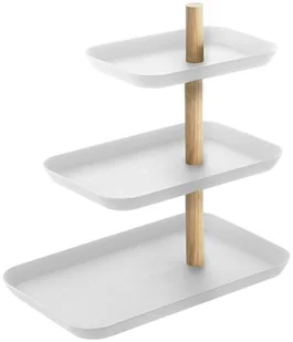 Yamazaki 1581 RIN 3-poziomowy stojak na biżuterię z obrotowymi półkami, biały, stal/drewno, minimalistyczny, 25 x 16 x 25,5 cm