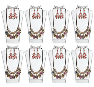 zestaw 8 - Profesjonalny plastikowy stojak na biżuterię - Idealny na cenną biżuterię!Prezentuj i organizuj swoje naszyjniki, kolczyki i inne elementy biżuterii w dobrym stylu dzięki temu plastikowemu stojakowi na biżuterię. Ten stojak na biżuterię oferuje elegancki sposób na zaprezentowanie swoich skarbów w wysokiej jakości sposób. Plastikowy materiał zapewnia trwałość i pozwala na profesjonalną prezentację kolekcji biżuterii. Dzięki temu stojakowi na biżuterię możesz zaprezentować swoją kolekcję biżuterii w schludny i przejrzysty sposób. Najważniejsze cechy produktu:
