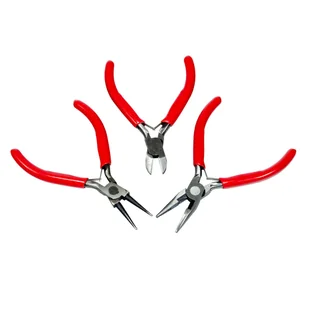 Zestaw narzędzi do biżuterii: okrągłe, półokrągłe i tnące Kod produktu: 450003-12 Najczęściej używane narzędzia Powleczone czerwoną gumą, aby zapewnić bezpie...