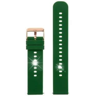 Pasek gumowy do zegarka U27 - ciemnozielony/rosegold - 20mm U27 WYMIARY: szerokość przy mocowaniu: 20mm szerokość przy klamerce: 20mm długość części z klamerką: 75mm długość części z dziurkami: