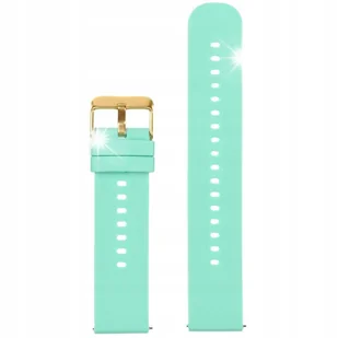 Pasek gumowy do zegarka U27 - miętowy/złoty - 20mm U27 WYMIARY: szerokość przy mocowaniu: 20mm szerokość przy klamerce: 20mm długość części z klamerką: 75mm długość części z dziurkami:
