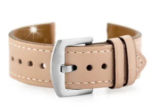 Pasek skórzany do zegarka W81 - różowy - 20mm Opis produktu OPIS: Pasek ze skóry naturalnej w kolorze różowym przeszywany białą nicią. Klamerka metalowa w kolorze srebrnym. WYMIARY szerokość przy mocowaniu: 20mm szerokość przy klamerce: