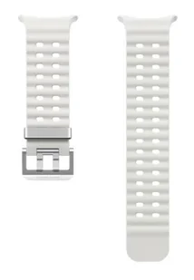 Pasek Sport Band. Podkręć swoją wydajność Pasek Marine Band został stworzony, aby spełniać standardy wydajności nowego Galaxy Watch Ultra. Możesz bez obaw podbijać sporty wodne dzięki lekkiej i trwałej klamrze oraz szerokiemu marszczeniu ułatwiającemu odprowadzanie wody i szybkiemu suszeniu potu. Komfort i trwałość Stworzony, aby płynnie łączyć się z korpusem smartwatcha, zapewniając elegancki wygląd i dokładne dopasowanie, szczególnie podczas intensywnych aktywności. Zmienianie i dostosowywanie pasków jednym kliknięciem eliminuje wszelkie skomplikowane czynności.