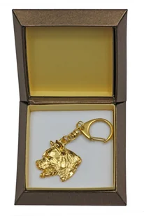 Amerykański Staffordshire terrier, Amstaff, Amstaf I - pozłocony brelok do kluczy z psem w pudełku prezentowym, ozdoba torebki, luksusowy dodatek marki Art-D...