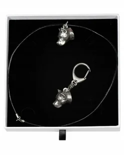 Posrebrzany brelok oraz posrebrzana zawieszka, naszyjnik na rzemieniu ze srebrnym zapięciem zapakowane w eleganckie pudełko prezentowe Nasze wysokiej klasy b...