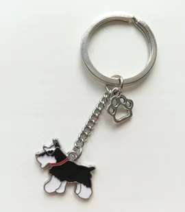 BRELOCZEK BRELOK DO KLUCZY PIES PIESEK SZNAUCER BRELOK Z PSEM W ZESTAWIE JEST KÓŁKO DO KLUCZY W KOLORZE SREBRNYM UŻYTE DODATKI TO PSIA ŁAPKA I EMALIOWANY PIE...