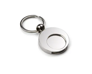 Brelok metalowy wraz z żetonem, o chromowanej powierzchni. Sam żeton pasuje do wózków sklepowych. Grawer wykonujemy na żetonie. Żeton jest średnicy 1 Euro. M...
