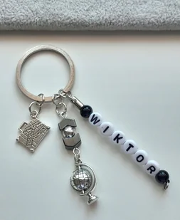 BRELOK BRELOCZEK DO KLUCZY GLOBUS PODRÓŻ WALIZKA IMIĘ NAPIS BRELOCZEK Z DOWOLNYM IMIENIEM LUB NAPISEM W ZESTAWIE JEST KÓŁKO DO KLUCZY W KOLORZE SREBRNYM UŻYT...