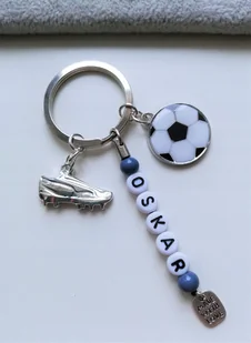 BRELOK BRELOCZEK DOKLUCZY PIŁKA NOŻNA PIŁKARZ IMIĘ DOCZEPKA -BRELOCZEK Z DOWOLNYM IMIENIEM LUB NAPISEM W ZESTAWIE JEST KÓŁKO DO KLUCZY W KOLORZE SREBRNYM UŻY...