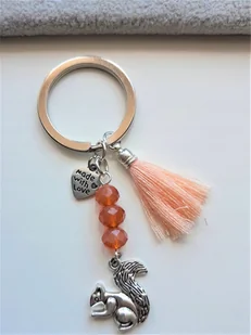 BRELOK BRELOCZEK RUDA WIEWIÓRKA SERCE CHWOST BRELOCZEK WIEWIÓRKA W ZESTAWIE JEST KÓŁKO DO KLUCZY W KOLORZE SREBRNYM UŻYTE DODATKI TO POSTAĆ WIEWIÓRKI Z DODAT...