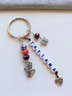 BRELOK BRELOCZEK SERCE FARBY PĘDZEL MOTYL IMIĘ DOCZEPKA -BRELOCZEK Z DOWOLNYM IMIENIEM LUB NAPISEM W ZESTAWIE JEST KÓŁKO DO KLUCZY W KOLORZE SREBRNYM UŻYTE D...