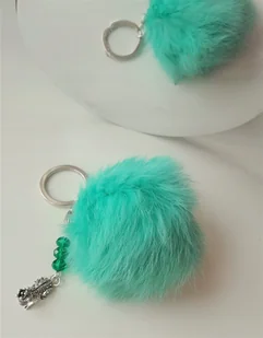 BRELOK FUTRO MIĘTOWY POMPON ŻABA DO KLUCZY DO AUTA BRELOK Z MIĘTOWYM POMPONEM Z ŻABĄ KÓŁKO DO KLUCZY W KOLORZE SREBRNYM ŚWIETNY POMYSŁ NA PREZENT! BRELOK-POM...