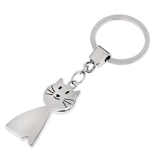 Srebrny brelok w kształcie wesołego kotka. Waga 27g, kółko do kluczy o średnicy 3,2cm, długość całkowita 10cm. Zapakowany w czarne tekturowe pudełko upominkowe.
