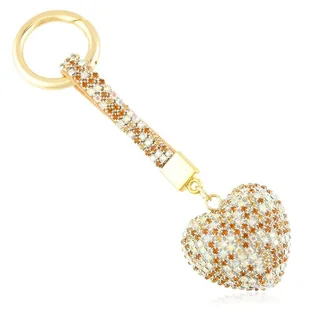 Ozdobny brelok w kształcie kryształowego serca z cyrkoniami. Dodatki metalowe w kolorze złotym. Breloczek posiada oczko do przypięcia kluczy i zapięcie dzięk...