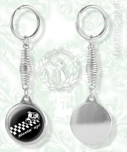 Solidny, metalowy brelok do kluczy w kolorze srebrnym. Pokryty ochronną warstwą chromu. Kółko na klucze przymocowane za pomocą stalowej sprężyny. Średnica br...