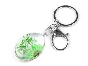 Brelok naturalne kwiaty w żywicy zielony Delikatny wisiorek z prawdziwymi kwiatami w żywicy kryształowej przyciąga wzrok, jest wręcz magiczny. Posiada wypukł...