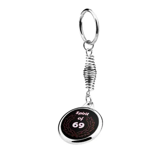 Solidny, metalowy brelok do kluczy w kolorze srebrnym. Pokryty ochronną warstwą chromu. Kółko na klucze przymocowane za pomocą stalowej sprężyny. Średnica br...