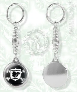 Solidny, metalowy brelok do kluczy w kolorze srebrnym. Pokryty ochronną warstwą chromu. Kółko na klucze przymocowane za pomocą stalowej sprężyny. Średnica br...
