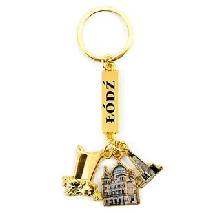 Brelok zawieszki Łódź Breloczek z zawieszkami przedstawiającymi zabytki Łodzi. Kolor: złoty Tworzywo: metal Wysoka jakość, mimo małych rozmiarów bardzo szcze...