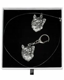 Posrebrzany brelok oraz posrebrzana zawieszka, naszyjnik na rzemieniu ze srebrnym zapięciem zapakowane w eleganckie pudełko prezentowe Nasze wysokiej klasy b...