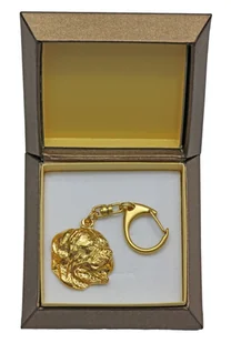 Dog z Bordeaux, Dogue de Bordeaux, Mastif francuski I - pozłocony brelok do kluczy z psem w pudełku prezentowym, ozdoba torebki, luksusowy dodatek marki Art-...