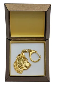 Presa Canario, Dog kanaryjski - pozłocony brelok do kluczy z psem w pudełku prezentowym, ozdoba torebki, luksusowy dodatek marki Art-Dog Brelok w ozdobnym pu...