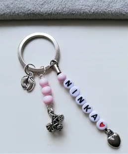 RÓŻOWY BRELOK BRELOCZEK DO KLUCZY WÓZEK STOPY IMIĘ DOCZEPKA -BRELOCZEK Z DOWOLNYM IMIENIEM LUB NAPISEM W ZESTAWIE JEST KÓŁKO DO KLUCZY W KOLORZE SREBRNYM UŻY...