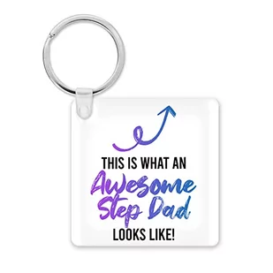 Zabawna nowość brelok prezent | przyjaciel brelok do kluczy praca kolega opuszczający pracę prezent | Niesamowity ojczym | Kluczowe akcesorium żart | KBH172, multi, 5.8cm x 5.8cm