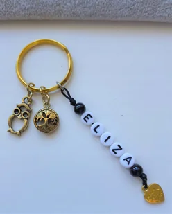 ZŁOTY BRELOK BRELOCZEK DO KLUCZY SOWA SERCE IMIĘ ZŁOTO CZARNY BRELOCZEK Z DOWOLNYM IMIENIEM LUB NAPISEM W ZESTAWIE JEST KÓŁKO DO KLUCZY W KOLORZE ZŁOTYM UŻYT...