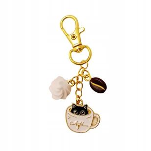 Złoty brelok kot w jasnej filiżance kawy Sprzedaż dotyczy 1 sztuki. Doskonały pomysł na prezent Ten uroczy brelok to prezent odpowiedni na różne okazje. To i...