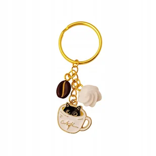 Złoty brelok kot w jasnej filiżance kawy Sprzedaż dotyczy 1 sztuki. Doskonały pomysł na prezent Ten uroczy brelok to prezent odpowiedni na różne okazje. To i...