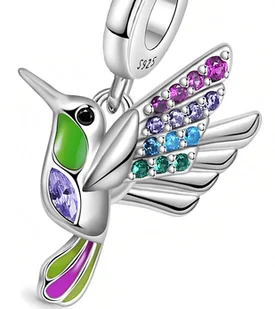 Poprawiona technika srebrzenia - bardziej odporna na ścieranie Charms Koliber Ożyw swoją bransoletkę z naszym uroczym charmsem typu pandora w kształcie kolibra. Ten delikatny i kolorowy charms, idealnie pasujący na bransoletki Pandory i nie tylko, jest symbolem lekkości, radości i piękna natury. Wykonany z najwyższej jakości materiałów, zachwyca swoim szczegółowym designem, przypominającym żywego, ruchliwego kolibra. Ten wyjątkowy charms to nie tylko wspaniały dodatek do Twojej biżuterii, ale także codzienne przypomnienie o małych radościach życia i jego nieustannej zmienności. Dodaj go do swojej kolekcji, by każdego dnia cieszyć się odrobiną natury i koloru.